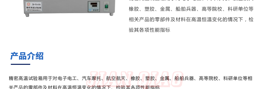 用途:精密高溫試驗(yàn)箱用于對(duì)電子電工、汽車摩托、航空航天、橡膠、塑膠、金屬、船舶兵器、高等院校、科研單位等相關(guān)產(chǎn)品的零部件及材料在高溫恒溫變化的情況下,檢驗(yàn)其各項(xiàng)性能指標(biāo)
