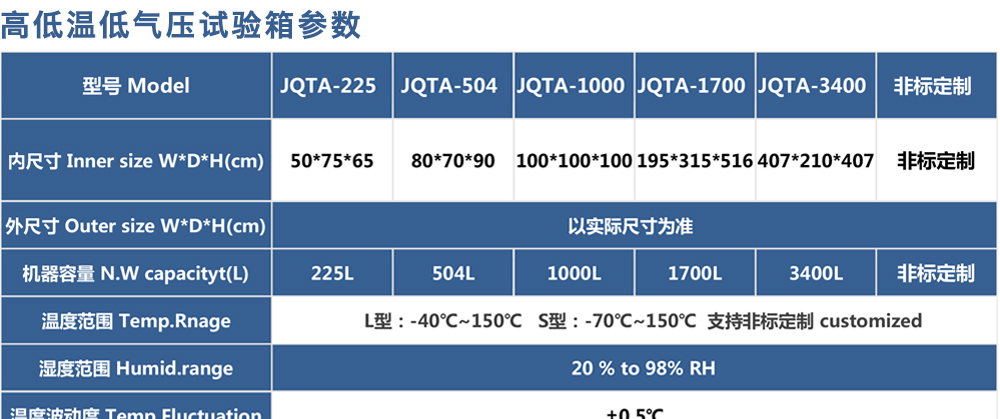 產(chǎn)品型號:JQTA-504 品牌:劍 喬 用途:高低溫低氣壓試驗箱,簡稱低氣壓試驗機、低氣壓(高度)試驗箱、高低溫濕熱低氣壓試驗箱,適用于電工、電子產(chǎn)品及其他產(chǎn)品、零部件及材料進行低氣壓試驗的環(huán)境試驗箱設(shè)備,可滿足電工咨詢熱線:13829135130