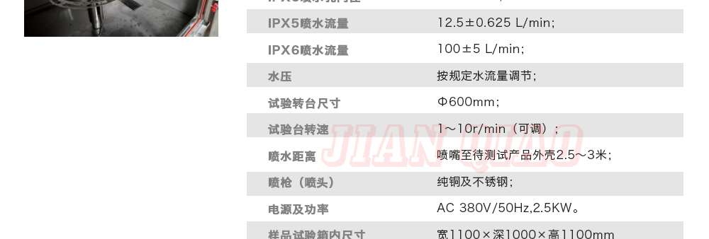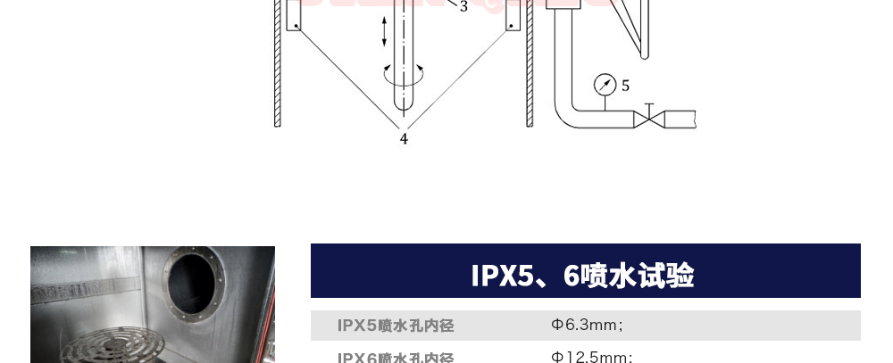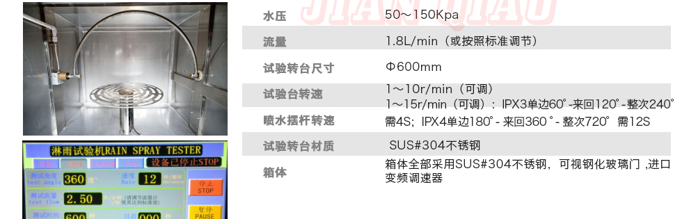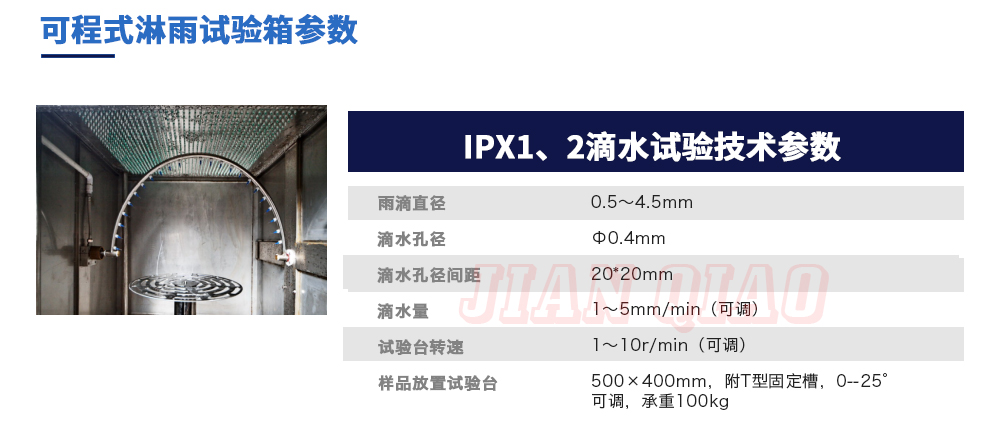 用途:可程式淋雨試驗箱適用于電工電子產(chǎn)品(包括組件)、燈具照明產(chǎn)品、汽車摩托車零部件外殼和密封件等產(chǎn)品做外殼防護等級測試(IP 防水等級試驗),模擬其產(chǎn)品在運輸和使用期間可能受