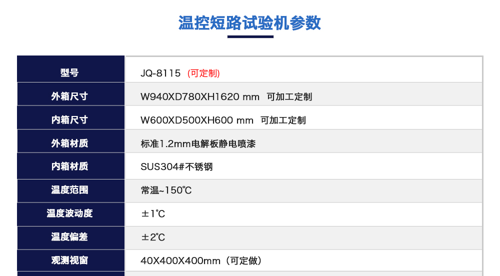 用途:溫控型電池短路試驗(yàn)機(jī)綜合多種電池短路試驗(yàn)標(biāo)準(zhǔn)要求而設(shè)計(jì)按標(biāo)準(zhǔn)要求短路裝置必須符合內(nèi)阻范圍≤5mΩ從而獲得試驗(yàn)要求的最大短路電流