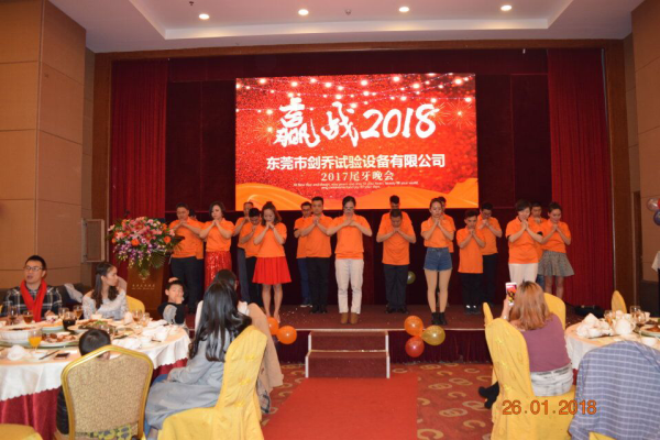 2018年元月26日,劍喬試驗(yàn)設(shè)備于塘廈匯華酒店成功舉辦了2017年尾牙晚會(huì),會(huì)上高朋滿座,劍喬總經(jīng)理在會(huì)上發(fā)表致辭,表達(dá)了對(duì)各位合作伙伴一年以來大力支持的感謝,更是總結(jié)了2017年劍喬公司一年里的收獲及成長,并給優(yōu)秀員工及突出貢獻(xiàn)的人員給予表彰。再對(duì)劍喬2018年定下了發(fā)展目標(biāo)及期許,晚會(huì)在一片歡樂祥和中進(jìn)行。