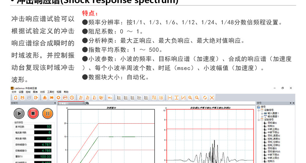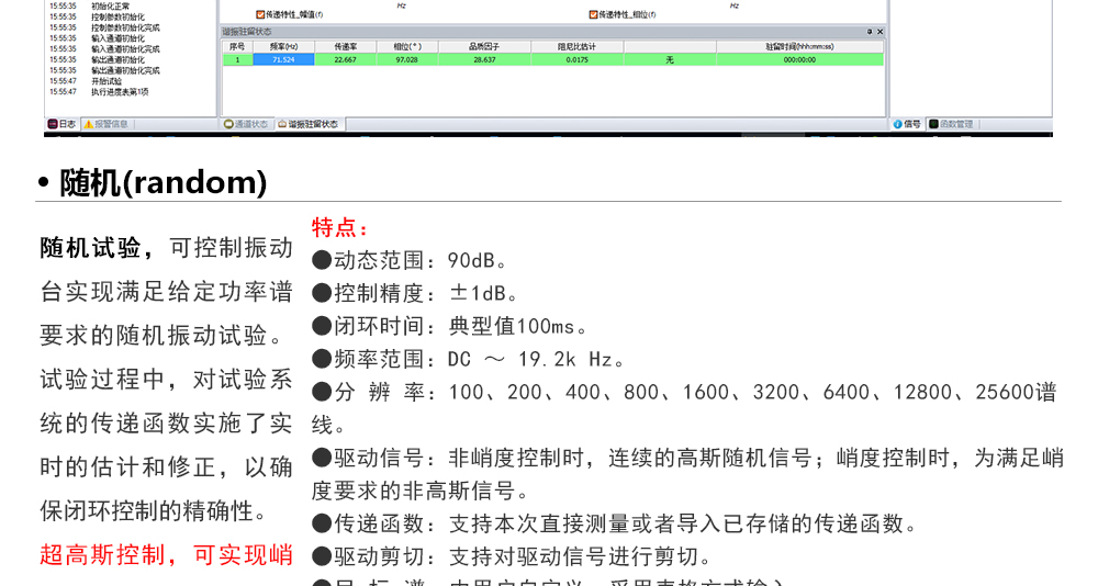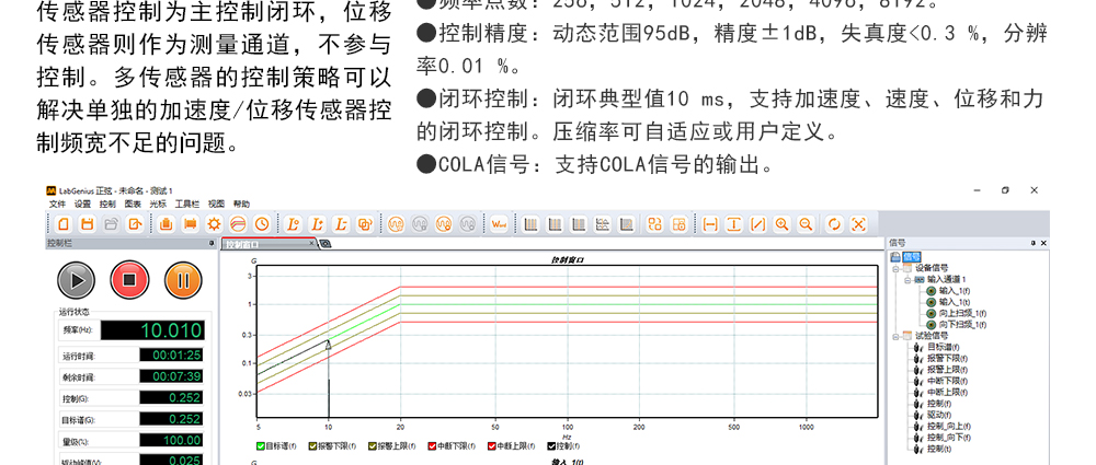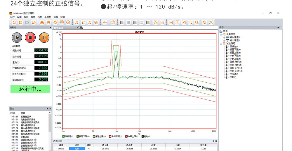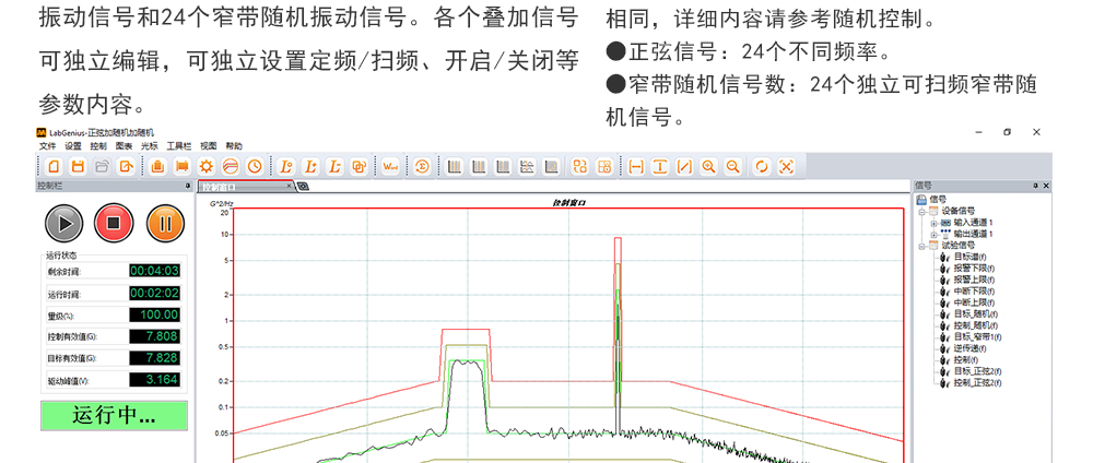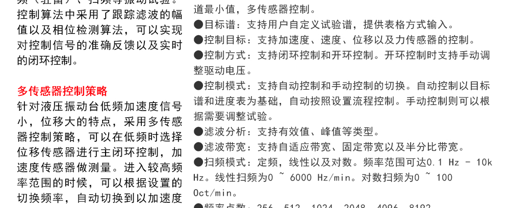 用途:正弦試驗可以控制振動臺實現定頻(駐留)、掃頻等振動試驗??刂扑惴ㄖ胁捎昧烁櫈V波的幅值以及相位檢測算法,可以實現對控制信號的準確反饋以及實時的閉環控制。
